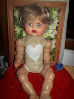 Esta llegó a mis manos con una peluca de color gris (era el casquete de una muñeca de plástico), sin ojos y con algunos deterioros aparte de la suciedad...